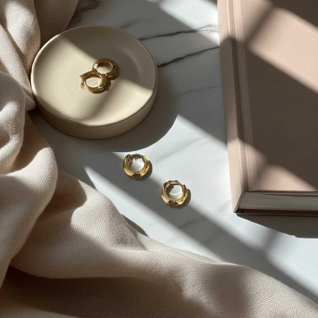 Crafted from waterproof, hypoallergenic materials, they're designed to move with you through every season, every outfit, and every moment. Timeless, lightweight, and endlessly versatile, these gold-plated stainless steel hoops prove that less really can be more.