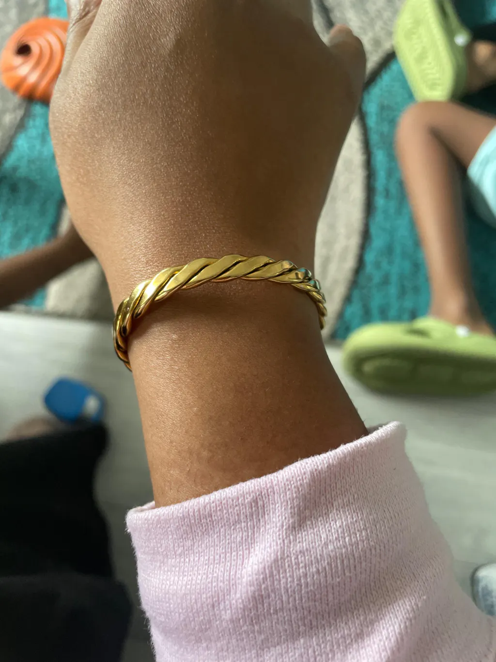 I usually don't wear jewelry like this, but I wanted to try something new. Definitely happy with my purchase. It's such a beautiful cuff to stack with other bracelets and adds a lot to the look. It goes so well with my skin tone and just pops - 20/10 in my opinion.