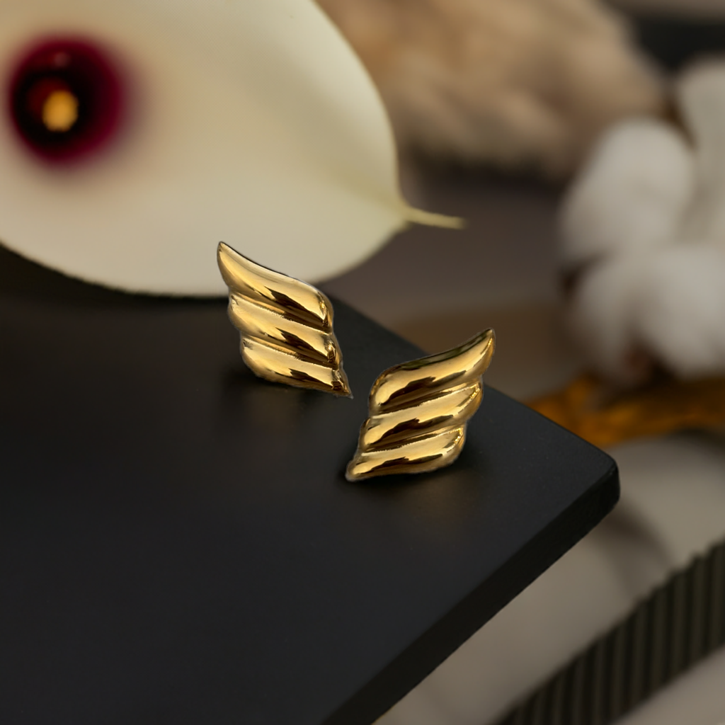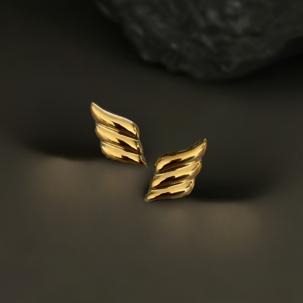 Sculptural and striking, the Golden Wings earrings channel effortless elegance with a whisper of edge. Their fluid, wing-inspired shape evokes freedom and confidence - an emblem of women who move with intention and style.