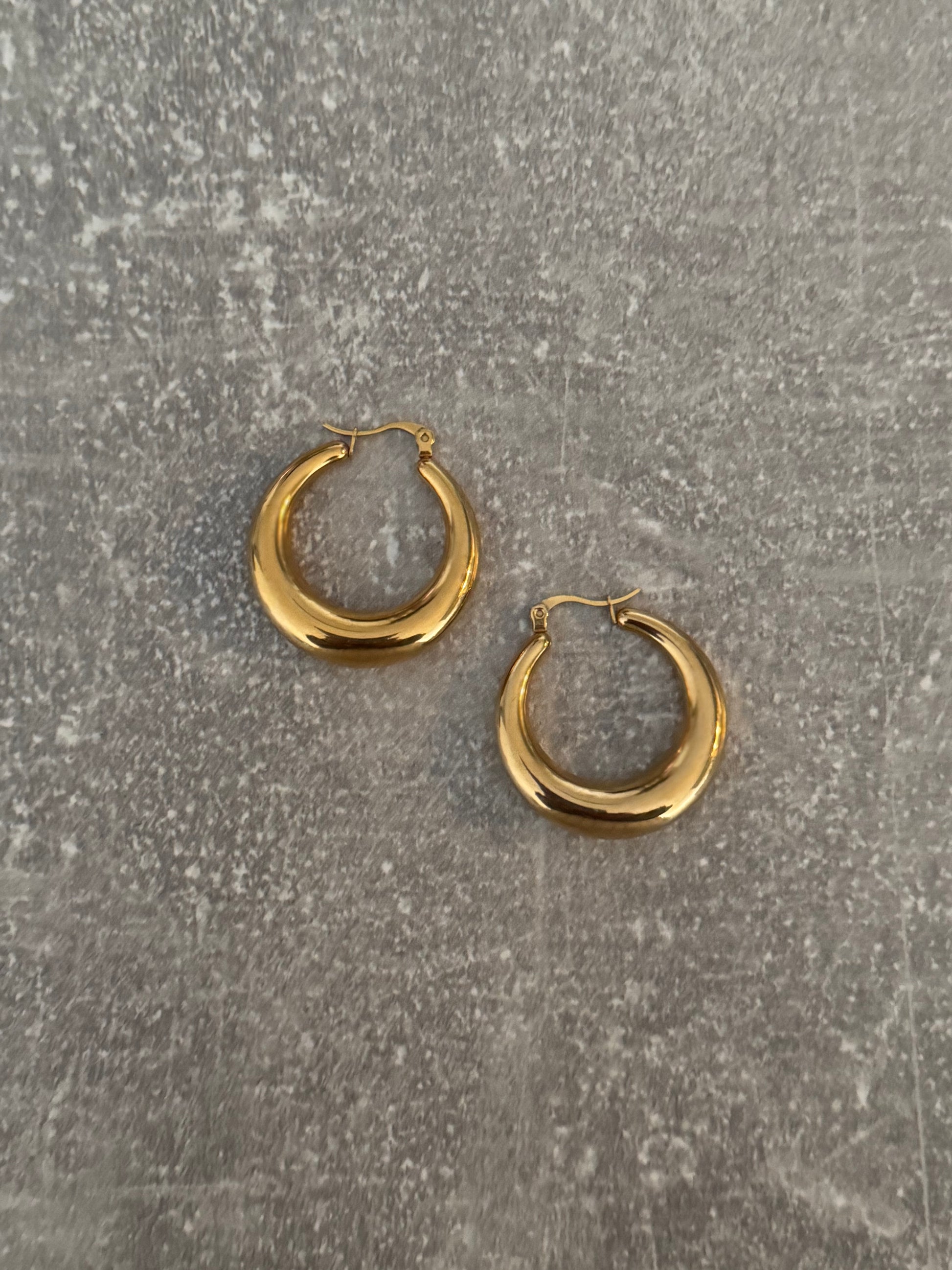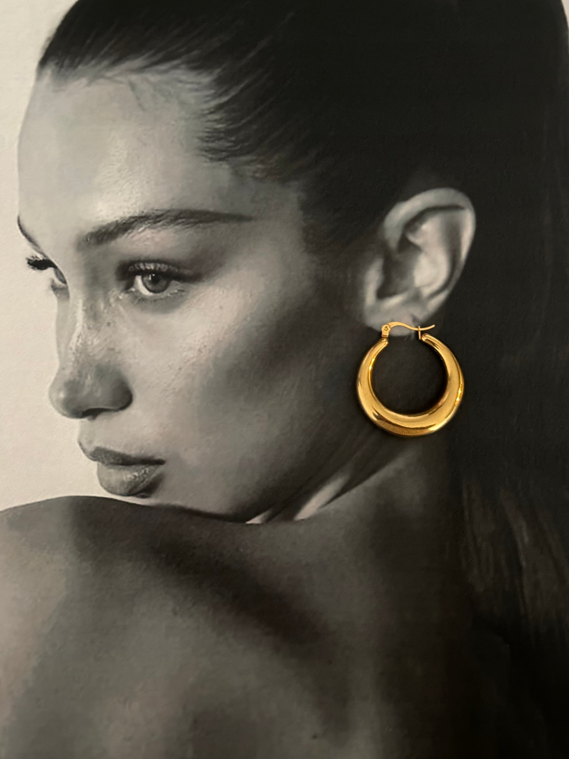 Like the golden glow of a late afternoon sun, the Halo Hoops bring warmth, elegance, and effortless beauty to your everyday look. Inspired by the quiet confidence of a woman who moves with grace and intention, these sculptural hoops curve gently, thicker at the base, tapering delicately toward the top, for a silhouette that feels both modern and timeless.
