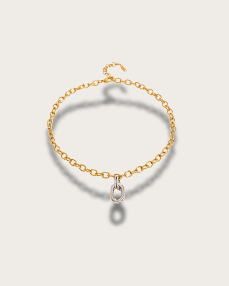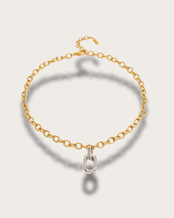 For the woman who leads with style and leaves a lasting impression, the Muse Link Necklace is your modern statement necklace. Crafted from 18k gold-plated stainless steel, its chunky chain silhouette meets a cool silver-tone pendant, creating a powerful two-tone contrast necklace that demands attention.