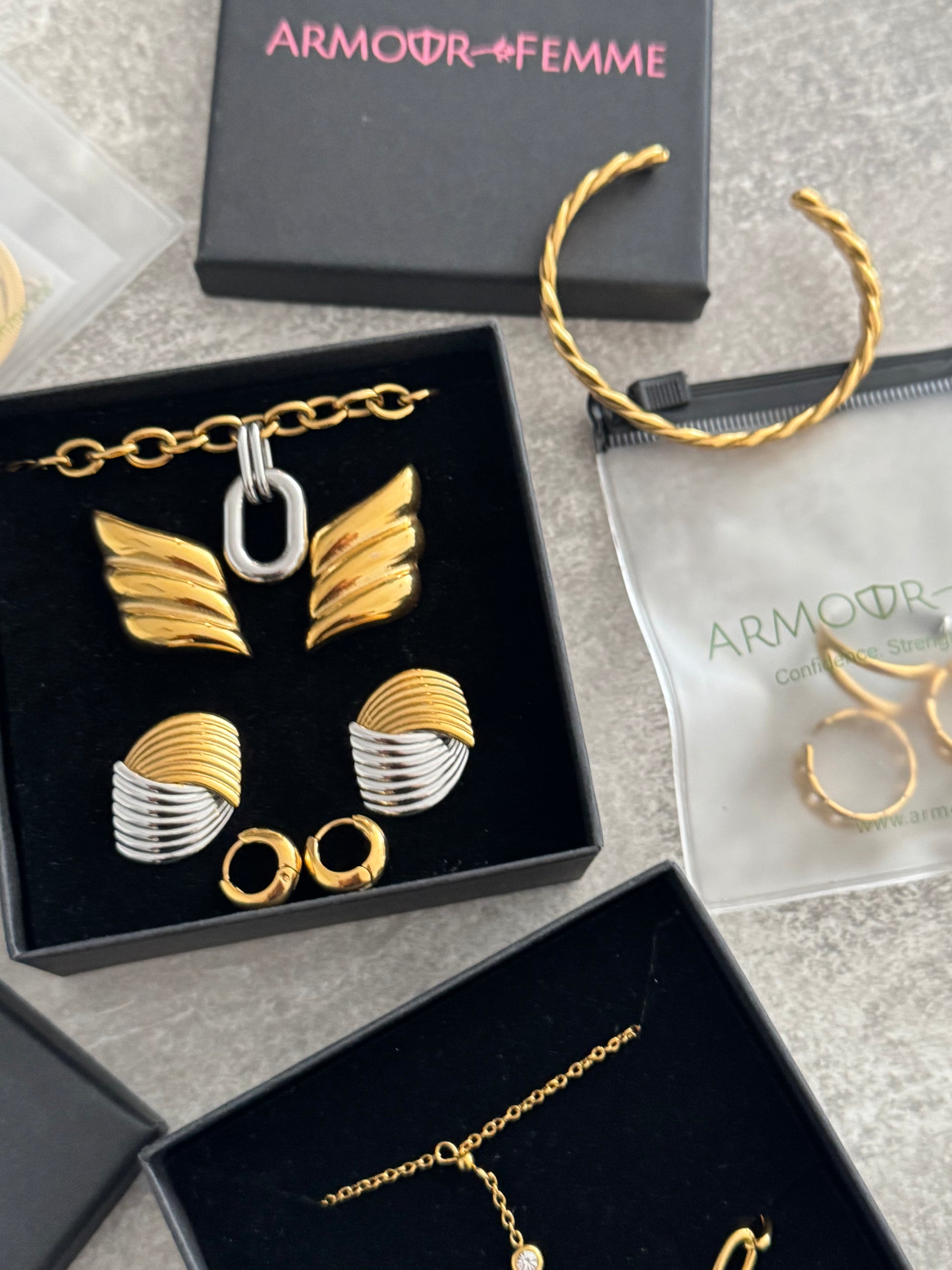 Designed for the modern muse, this piece is crafted from premium stainless steel and finished with a lustrous 18k gold plating.