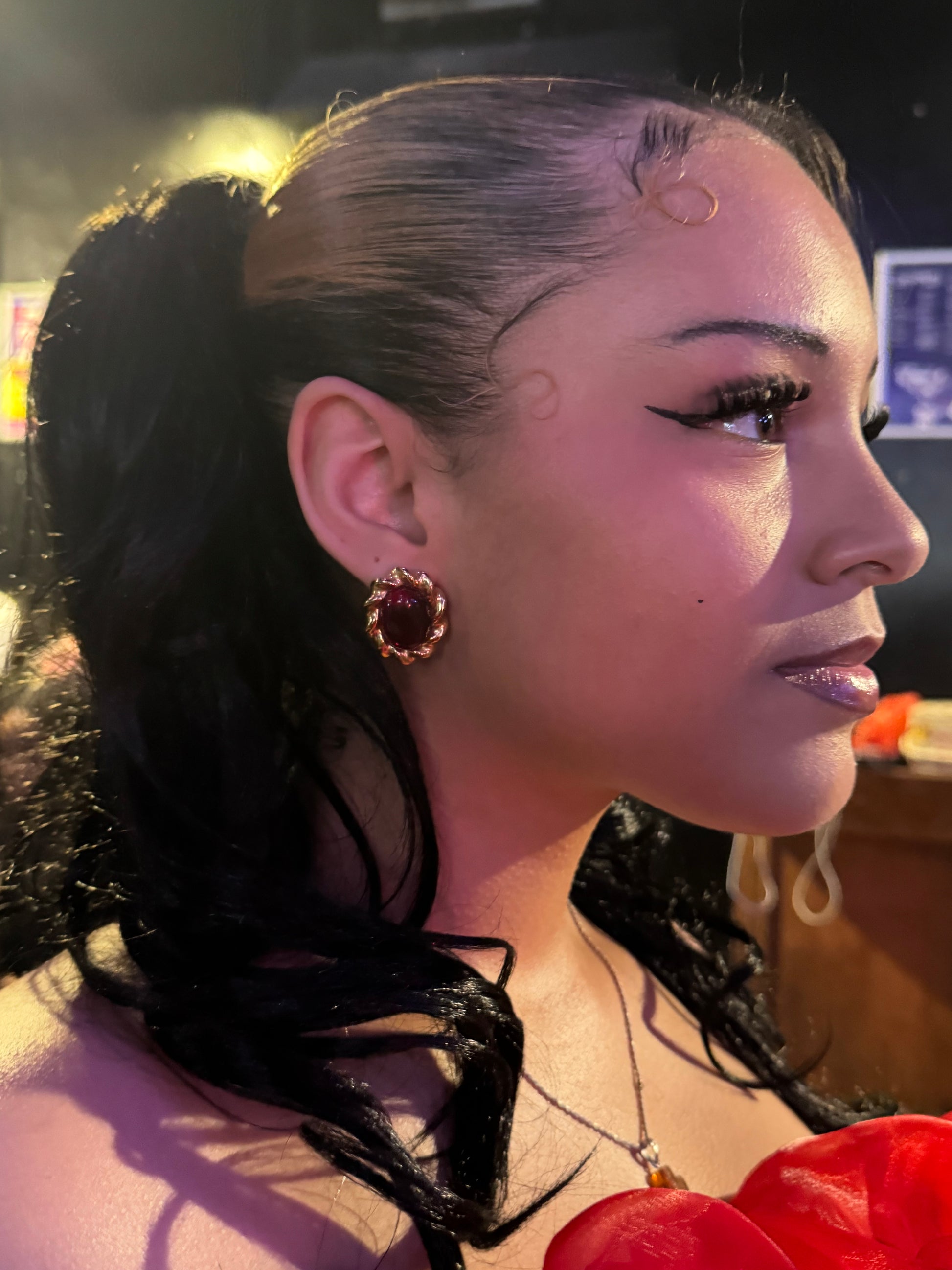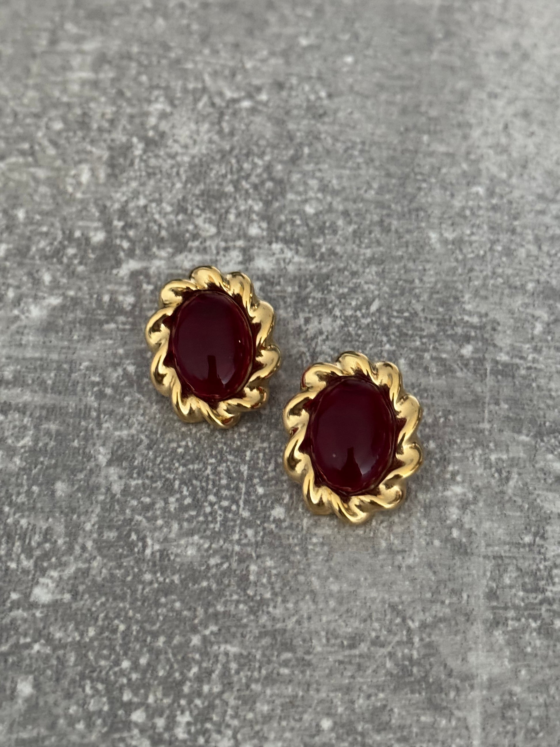 With a nod to vintage glamour and a heart rooted in power, Scarlet Luxe earrings are a celebration of bold femininity. At the center, a deep red agate stone glows with richness, symbolizing strength, passion, and vitality, encased in a striking 18K gold-plated stainless steel spiral that evokes timeless artistry.
